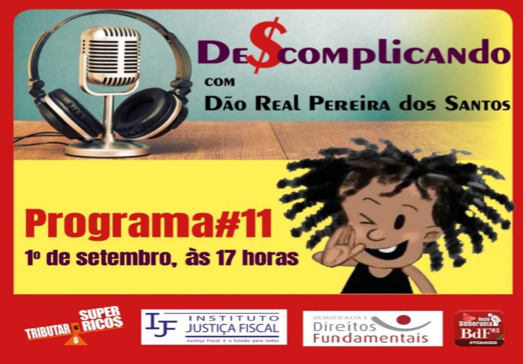 Vai ao ar a 11º edição do Programa Descomplicando nesta quarta-feira (01/09), com Dão Real Pereira dos Santos, auditor fiscal, vice-presidente do IJF (Instituto Justiça Fiscal) e integrante do Coletivo Auditores Fiscais pela Democracia. Ele também faz parte da coordenação da Campanha Tributar os Super-Ricos.