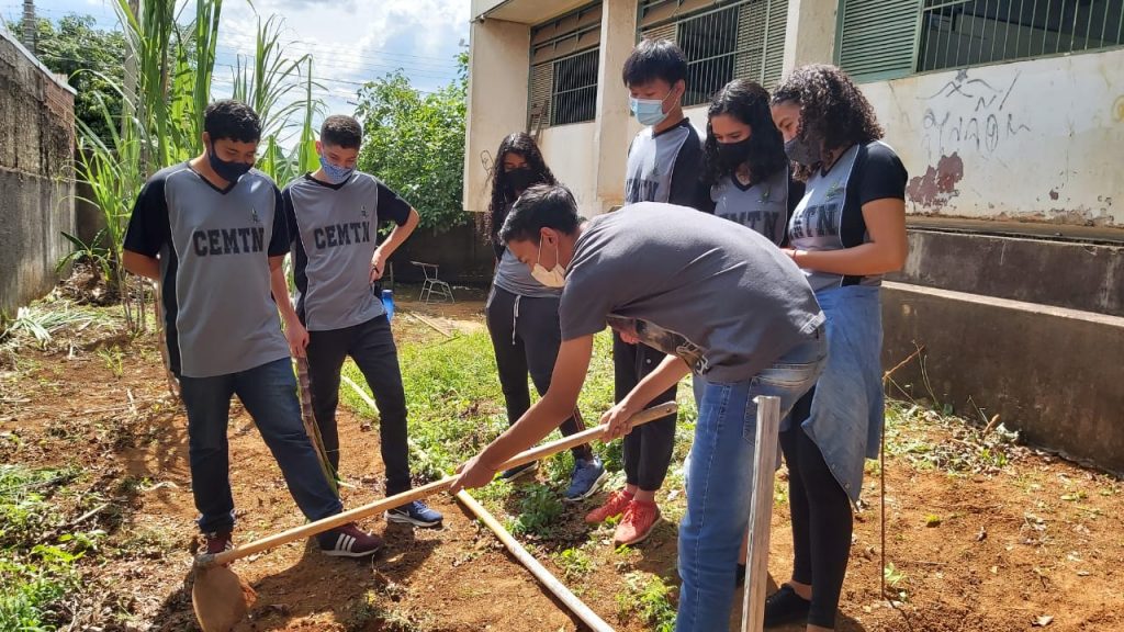 Assim, nasceu uma agrofloresta no espaço do CEMTN! Inicialmente, o projeto era desenvolvido nos intervalos. Depois, o professor Morais criou um grupo de estudos que envolveu estudantes – especialmente aqueles com mais dificuldades e problemas disciplinares -, e realizavam as tarefas no seu turno contrário.