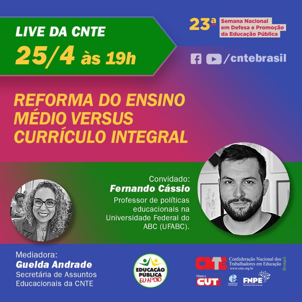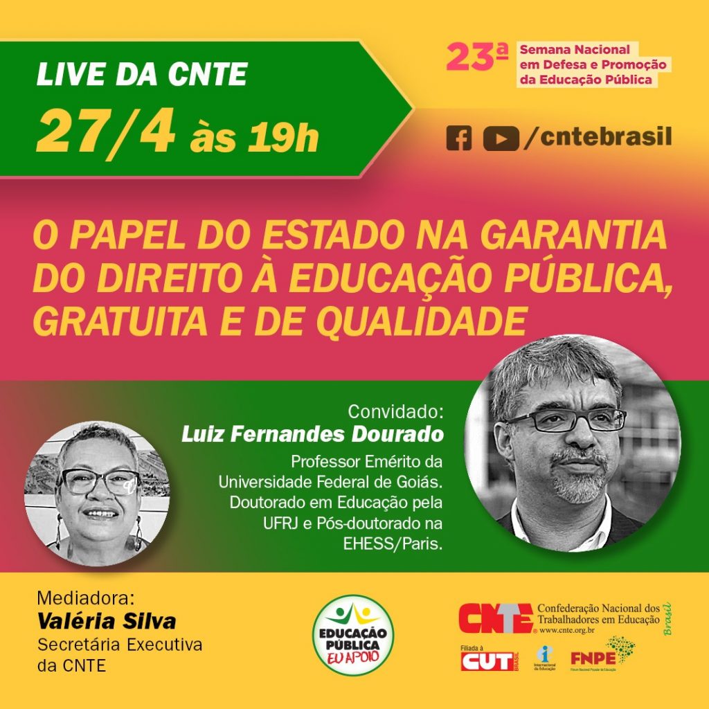 Um debate com os estudantes, pais, mães e responsáveis, a partir da live produzida pela CNTE, também faz parte da sugestão de atividades. Para a live, marcada para 19h, foi convidado o professor de políticas educacionais na Universidade Federal do ABC (UFABC), Fernando Cássio. Ele integra a Rede Escola Pública e Universidade (REPU) e o comitê diretivo da Campanha Nacional pelo Direito à Educação. A mediação fica por conta de Guelda Andrade, Secretária de Assuntos Educacionais da CNTE.