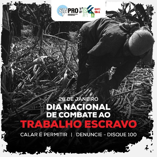 O dia 28 de janeiro marca o Dia Nacional de Combate ao Trabalho Escravo. A data, instituída em homenagem aos auditores Eratóstenes de Almeida Gonsalves, João Batista Soares Lage e Nelson José da Silva e ao motorista Aílton Pereira de Oliveira, mortos em 28 de janeiro de 2004 quando investigavam denúncias de trabalho escravo em fazendas na cidade mineira de Unaí, no episódio que ficou conhecido como a Chacina de Unaí, é mais um marco no combate ao trabalho análogo à escravidão.
