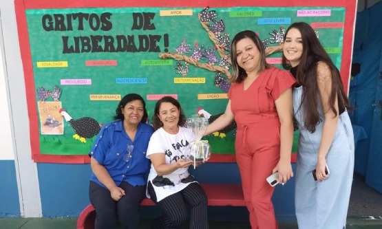 Ela diz que a base é a Língua Portuguesa, mas, tudo acontece, incluindo aí o envolvimento das demais disciplinas, de acordo com o tema. “Este ano, por exemplo, tivemos a obra “Tô fraca, Tô fraca”, da autora Rose Costa. Fala da história da galinha d’Angola . Mas, por trás dessa história, as crianças puderam trabalhar a questão da escravidão. O porquê da escravidão. Na história da Rose Costa, a autora diz que o ‘tô fraca’ é um grito de liberdade. E assim ela mostra que a gente precisa de dar o grito de liberdade todas as vezes que a gente se sentir oprimido, subjugado, então, é um trabalho riquíssimo que envolve artes, língua portuguesa, ciências, história geografia”, conta.