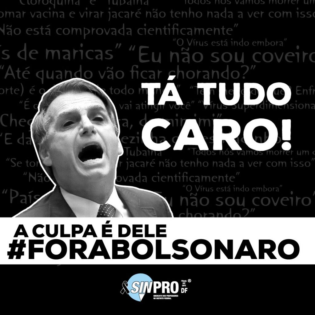 Não bastasse esta avalanche de altas, a inflação está pior a cada dia, o governo trabalha incessantemente para aprovar projetos de lei contra a classe trabalhadora e o futuro se torna cada vez mais nebuloso. Diante de todos estes argumentos, para você de quem é a culpa da alta nos preços em praticamente tudo no Brasil? Tá tudo caro – A culpa é dele: Fora Bolsonaro!