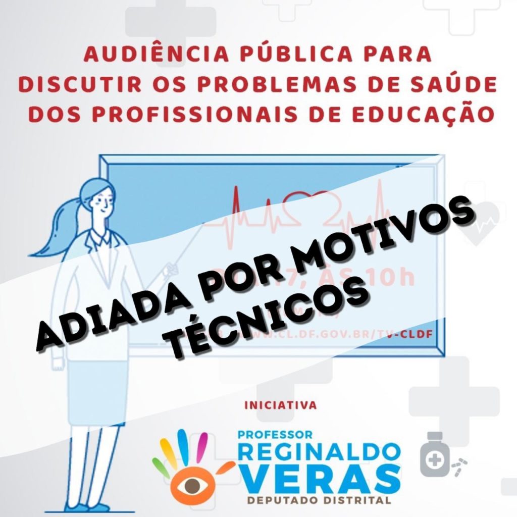 O gabinete do deputado Professor Reginaldo Veras (PDT), autor da iniciativa, avisou, na manhã desta quinta-feira (17), que a audiência pública que debateria a saúde dos profissionais de educação do DF precisou de ser adiada.