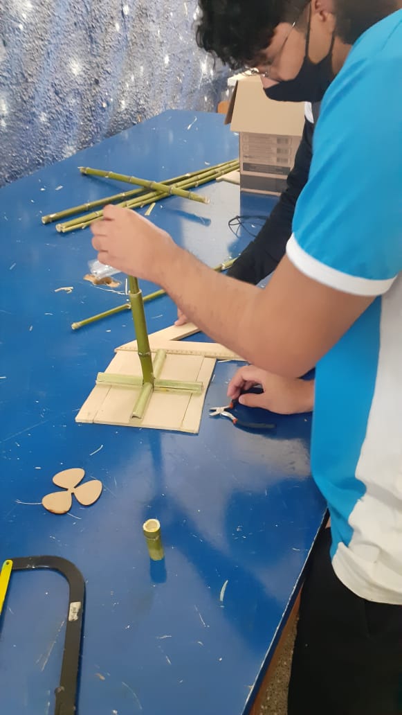 Outro projeto de destaque foi o do ventilador de bambu, desenvolvido por Eduardo, Wallyson e Augusto. Um dos objetivos do projeto é a troca do plástico, que demora mais de 400 anos para se decompor, pelo bambo, que demora pouco mais de um mês quando descartado. “Essas sementinhas que eu plantei realmente brotaram. Esses meninos são o que eu plantei e eles deixarão um legado para futuro do Brasil e do mundo quando nós já estivermos velhos. E é muito bom imaginar que eu tenho uma missão pra fazer a diferença quando as pessoas não conseguem mais perceber o valor que tem a natureza”, comemora a professora Eliani.