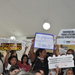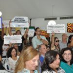 Professores(as),  orientadores(as) educacionais aposentados(as) e diretores do Sinpro-DF realizaram, na manhã desta quinta-feira (23), uma manifestação no Hospital da Criança, em que o governador Rodrigo Rollemberg (PSB) participava de uma agenda oficial, para exigir o pagamento da pecúnia da licença-prêmio.