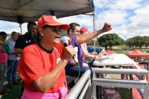 “Paramos um dia para evitar o retrocesso de uma vida inteira. Paramos a produção para mostrar que quem move o Brasil e a economia brasileira somos nós, trabalhadores. Não vamos aceitar que nenhum fascistinha, capitãozinho ou seja lá quem for retire nossos direitos; coloque nosso povo de volta na miséria, nos prive de educação, saúde e de segurança. Não permitiremos o fim das aposentadorias, a privatização das estatais, o desemprego, o roubo das terras de trabalhadores rurais, quilombolas e indígenas. Nossa luta é também por um Estado democrático de direito! E é por isso que paramos neste dia 14, na Greve Geral da classe trabalhadora”, afirma o presidente da CUT Brasília, Rodrigo Britto.