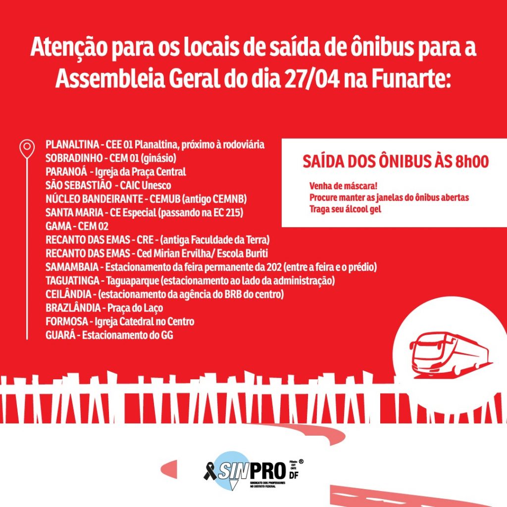 Confira no card abaixo os locais de ônibus para a assembleia: