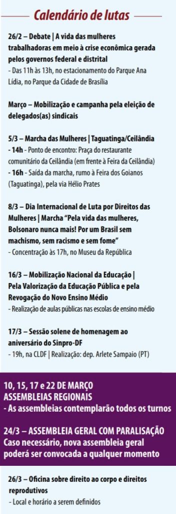 CONFIRA ABAIXO O CALENDÁRIO DE LUTAS APROVADO PELA ASSEMBLEIA GERAL DE 22/02