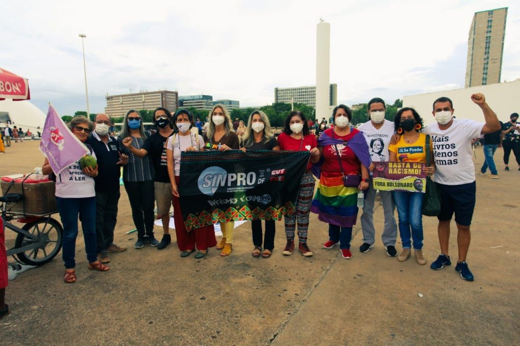 Márcia Gilda, diretora da Secretaria de Raça e Sexualidade do Sinpro, também saudou a realização do ato: “O racismo de Bolsonaro aprofunda as desigualdades no Brasil. A população negra é vítima preferencial do caos social e sanitário brasileiro, sendo a que mais sofre com as doenças, o desemprego, violência e a fome. Não é mais possível viver sob o terror de Estado provocado por Bolsonaro que, com seu discurso de ódio, inflama seus apoiadores a discriminarem outras etnias! Chega! Basta! Não há democracia, onde há racismo!”, disse ela.