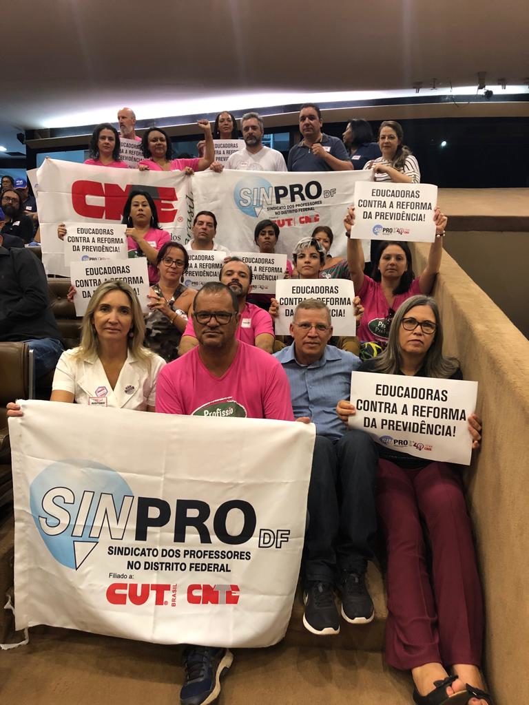 Lideranças sindicais de todas as centrais, dirigentes de vários sindicato, como a diretoria colegiada do Sinpro-DF, e servidores públicos federais e distritais, dentre eles professores(as) e orientadores(as) da rede pública de ensino do DF também participaram da audiência pública.