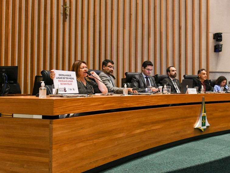 A Câmara Legislativa do Distrito Federal (CLDF), por meio do deputado distrital Joaquim Roriz Neto, colocou na pauta da Casa um dos temas mais preocupantes e recorrentes da atualidade: a violência nas escolas. A audiência pública foi realizada na última terça-feira (02) e teve a participação da coordenadora da Secretaria de Assuntos dos Aposentados do Sinpro, Elineide Rodrigues.