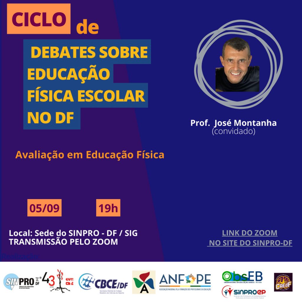 Este será o terceiro encontro do Ciclo de Debates, e terá como convidado o professor José Montanha. Participantes receberão certificação se tiverem ao menos 75% de presença ao final dos encontros. O primeiro tema abordado na atividade foi “Aspectos históricos da Educação Física na Educação Básica: os desafios do presente nos motivando a olhar para o passado, na perspectiva do futuro”. (https://sinpro25.sinprodf.org.br/sinpro-recebe-2o-encontro-de-ciclo-de-debates-sobre-educacao-fisica/)