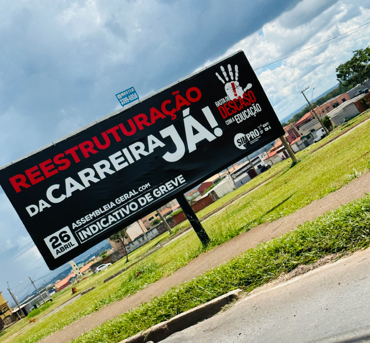 Outdoors com a frase “Reestruturação da carreira já” foram espalhados pelas principais vias do Distrito Federal nesta segunda-feira (3/4). Este é eixo central da “Campanha Salarial 2023: Basta de descaso com a educação!”.