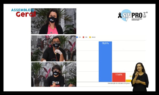 Professoras/es e orientadoras/es educacionais decidiram manter o indicativo de greve diante da insuficiência da atuação do Governo do Distrito Federal para mitigar o risco de contaminação e proliferação da covid-19 nas escolas públicas com o retorno presencial às aulas. A deliberação foi feita em assembleia virtual realizada nesta quarta-feira (11), por mais de 78% das/os participantes.