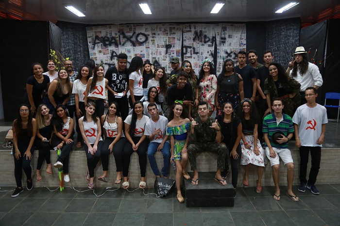 Estudantes após apresentação de peça teatral no auditório do CEM 04. Foto: Ecom