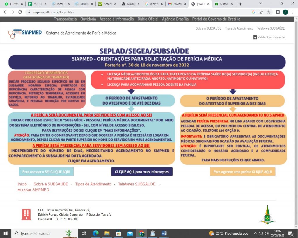 Para efetuar o agendamento, os(as) educadores(as) devem acessar o site https://siapmed.df.gov.br/ e clicar em Solicitar perícia.