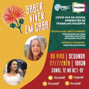 Para debater mais sobre o assunto, o programa Saber Viver em Casa desta segunda-feira (27) às 18h30, abordará “A Covid-19 e os Novos Ambientes de Trabalho Docente”. Participa como convidada Fátima Sueli Neto Ribeiro, professora da Universidade do Estado do Rio de Janeiro, Mestre e Doutora em Saúde Coletiva para debater o tema. Para mediação, participa a diretora do Sinpro, Mônica Caldeira.
