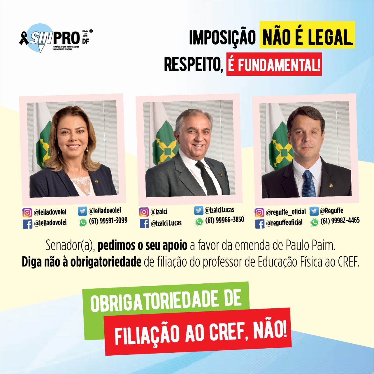 O Senado Federal colocou na pauta desta terça-feira (12) a votação do PL 2.486/2021, que mantém a obrigatoriedade do(a) professor(a) de Educação Física a se filiar ao Conselho Regional de Educação Física (CREF). O Sinpro convoca os(as) professores(as) e orientadores(as) educacionais a pressionarem os(as) parlamentares a favor da emenda do senador Paulo Paim (PT-RS).