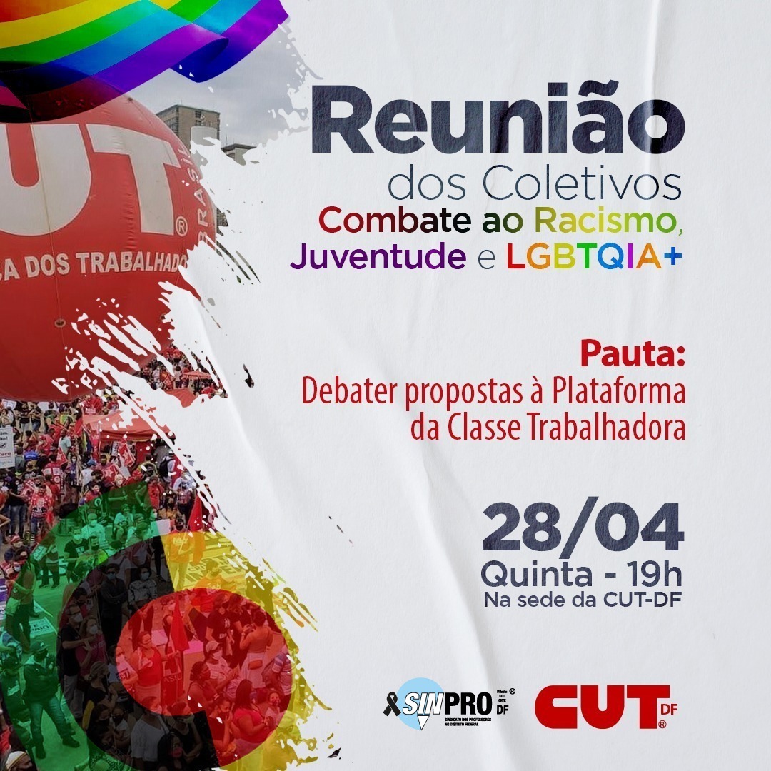 A Central Única dos Trabalhadores do Distrito Federal (CUT-DF) realiza na próxima quinta-feira (28), às 19h, reunião presencial dos coletivos da Juventude, LGBTQIA+ e combate ao racismo, que acontecerá na sede da CUT DF (SDS Edifício Venâncio V LJS 4, 14 e 22 – Asa Sul). É de extrema importância a participação dos(as) professores(as) e orientadores(as) educacionais para que possamos atuar de forma conjunta fortalecendo os Coletivos e a CUT para as mudanças que queremos para Brasília.