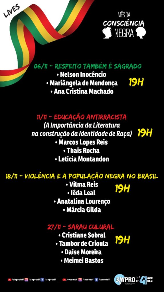 Veja abaixo o calendário completo da série de lives do Sinpro-DF no Mês da Consciência Negra