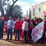 Delegação do Sinpro-DF em ato político, em Anápolis, dia 22/1, contra as OS. Fotos de Joaquim Dantas