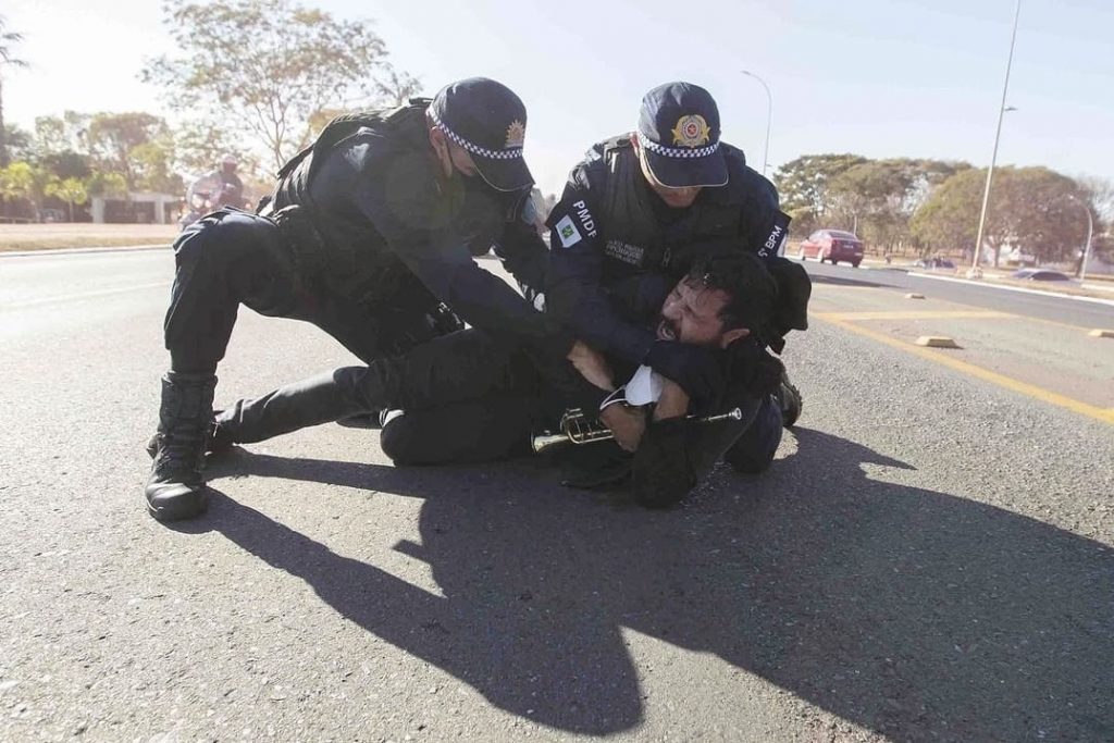 As Forças Armadas fizeram um desfile militar “inédito” na Esplanada dos Ministérios e estacionaram os tanques de guerra blindados em frente ao Palácio do Planalto com os canhões apontados para o Supremo Tribunal Federal (STF), nesta terça-feira (10/8), e, com eles, havia um grupo de manifestantes reivindicando a destituição dos ministros do STF. Durante o espetáculo, a Polícia Militar rendeu e prendeu o músico Fabiano e Silva Leitão, o TromPetista, que manifestava contra a ação autoritária do governo Bolsonaro.