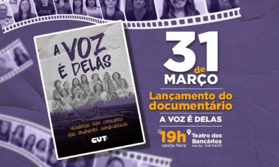 No próximo dia 31 de março, a CUT-DF (Central Única dos Trabalhadores do Distrito Federal) lançará o documentário “A voz é delas: histórias não contadas de mulheres sindicalistas”. A obra aborda o impacto do machismo no mundo sindical e a importância das mulheres na luta em defesa da classe trabalhadora, a partir dos depoimentos de sindicalistas do DF e do Brasil. O lançamento será no Teatro dos Bancários, às 19h. Entrada gratuita.