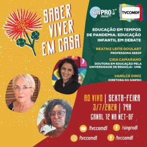 Na tentativa de trazer reflexões a tamanhos desafios, o programa Saber Viver em Casa desta sexta-feira (3), às 14h, abordará a “Educação em Tempos de Pandemia: Educação Infantil em Debate”, onde participam como convidadas a pedagoga mestre e doutora em educação pela Universidade de Brasília- UnB, Maria Aparecida Camarano Martins, que atua em pesquisas relacionadas à criança, infância, acolhimento institucional e Educação Infantil, e Beatriz Leite Goulart, professora da SEEDF há 24 anos, que hoje, trabalha diretamente com a Educação Precoce no Centro de Ensino Infantil 04 de Taguatinga. Para mediação do debate, participa a diretora do Sinpro, Vanilce Diniz.