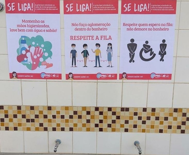 Sinpro-DF elaborou uma série de cartazes que orientam a comunidade escolar sobre como mitigar os riscos de infecção da covid-19. Os materiais foram afixados nas unidades escolares