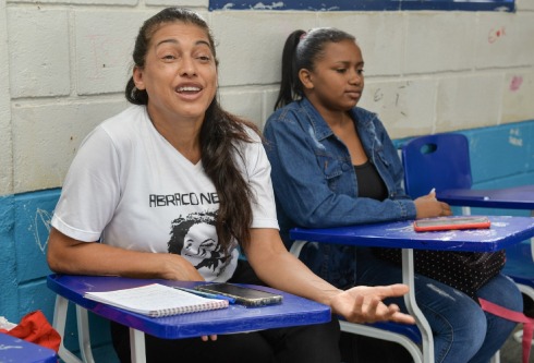 “A gente atua também com essa perspectiva. Durante o ano, várias escolas utilizaram o Ciclo de Debates da Secretaria de Raça e Sexualidade e, agora, em novembro, algumas estão nos convidando para participar também deste momento de culminância da proposta de educação antirracista nas escolas e tem sido muito bom”, afirma Márcia Gilda Moreira, coordenadora da Secretaria de Raça e Sexualidade do Sinpro.