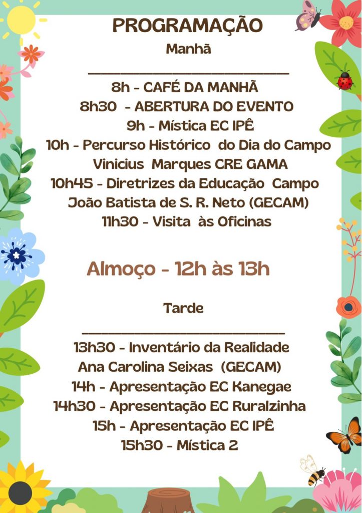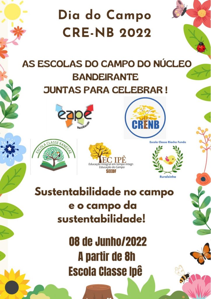 As escolas do campo do Núcleo Bandeirante celebram, na próxima quarta-feira (08), o Dia do Campo. O evento, que será realizado a partir das 8h, na Escola Classe Ipê, traz como tema Sustentabilidade no campo e o campo da sustentabilidade. O Dia do Campo tem como objetivo sensibilizar e despertar no público a importância econômica, social e ambiental da adoção de novas tecnologias e práticas sustentáveis.