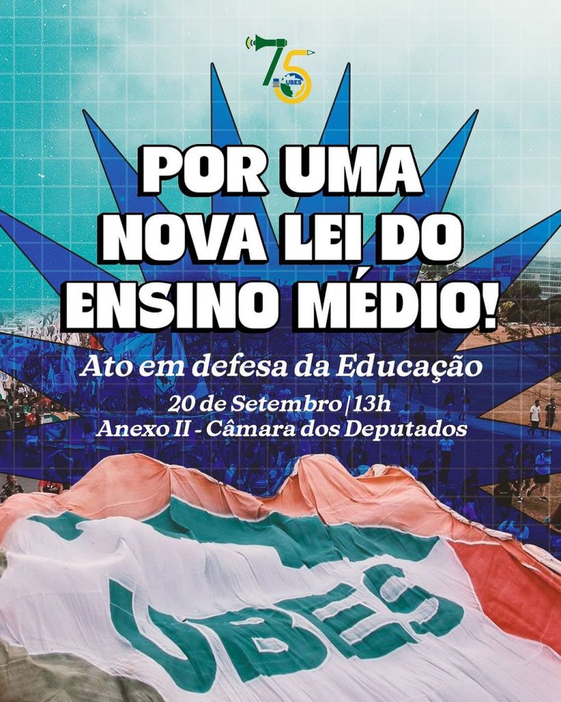 A Ubes (União Brasileira dos Estudantes Secundaristas) realizará nesta quarta-feira (20) uma blitz no Congresso Nacional pela elaboração de nova lei para o Ensino Médio. A atividade será a partir das 13h, com ato no Anexo II da Câmara dos Deputados.