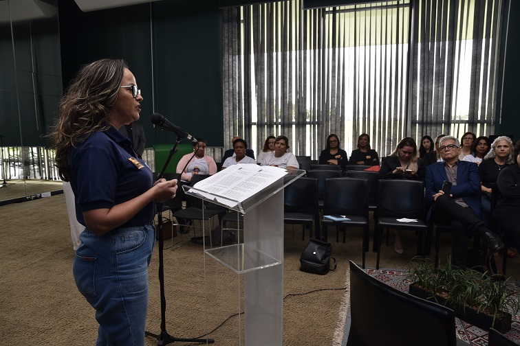 A fala da representante do Sinpro-DF, Luciana Custódio, abordou os desafios cotidianos enfrentados pelas pessoas com TEA e suas famílias. Esses desafios começam da suspeita do diagnóstico: acesso a profissionais que acompanhem, da investigação à conclusão do diagnóstico; e acesso a terapias, que são fundamentais para que a pessoa com TEA possa ter garantidas sua qualidade de vida e sua funcionalidade, nas diferentes necessidades de graus de suporte.