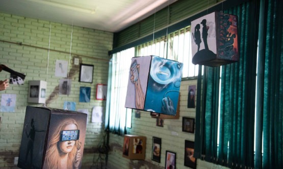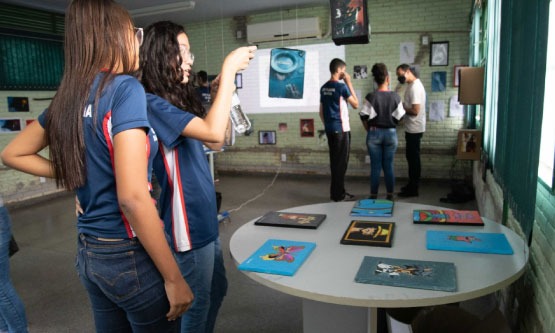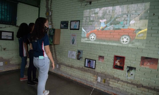 Exposição Sátira, do CEF 10 do Gama, problematiza uso excessivo de celular