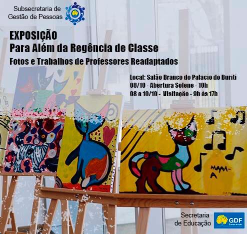 Outubro é o Mês do Servidor e, para celebrar a data, a Secretaria de Estado de Educação do Distrito Federal (SEDF) realizará o evento “Para além da Regência de Classe”. Trata-se de uma exposição de fotos e trabalhos de professores readaptados.