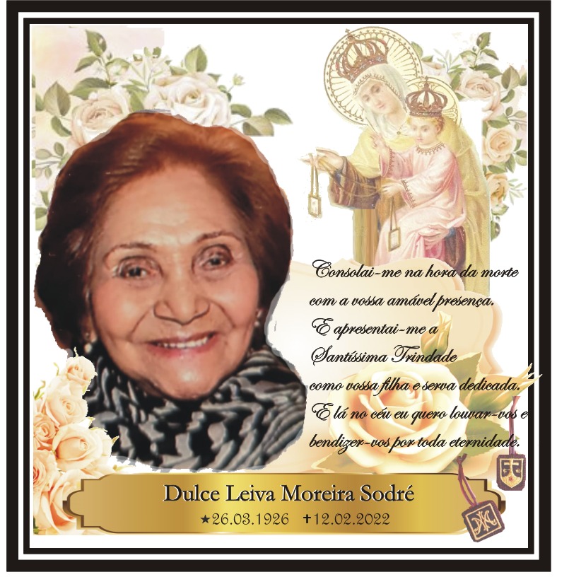 No próximo sábado (12), às 18h, familiares e amigos realizam uma missa em homenagem à professora aposentada Dulce Leiva Moreira Sodré, falecida no dia 12 de fevereiro. A educadora tinha 95 anos e morreu de causas naturais e cercada por familiares.