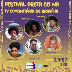 Para celebrar o Dia da Mulher Negra Latino – Americana e Caribenha, a TV Comunitária em parceria com o Sinpro, abre sua programação para uma exibição especial. Na próxima sexta-feira, às 18h, ao vivo o Festival Preta Cei, realizará debates e intervenções culturais.