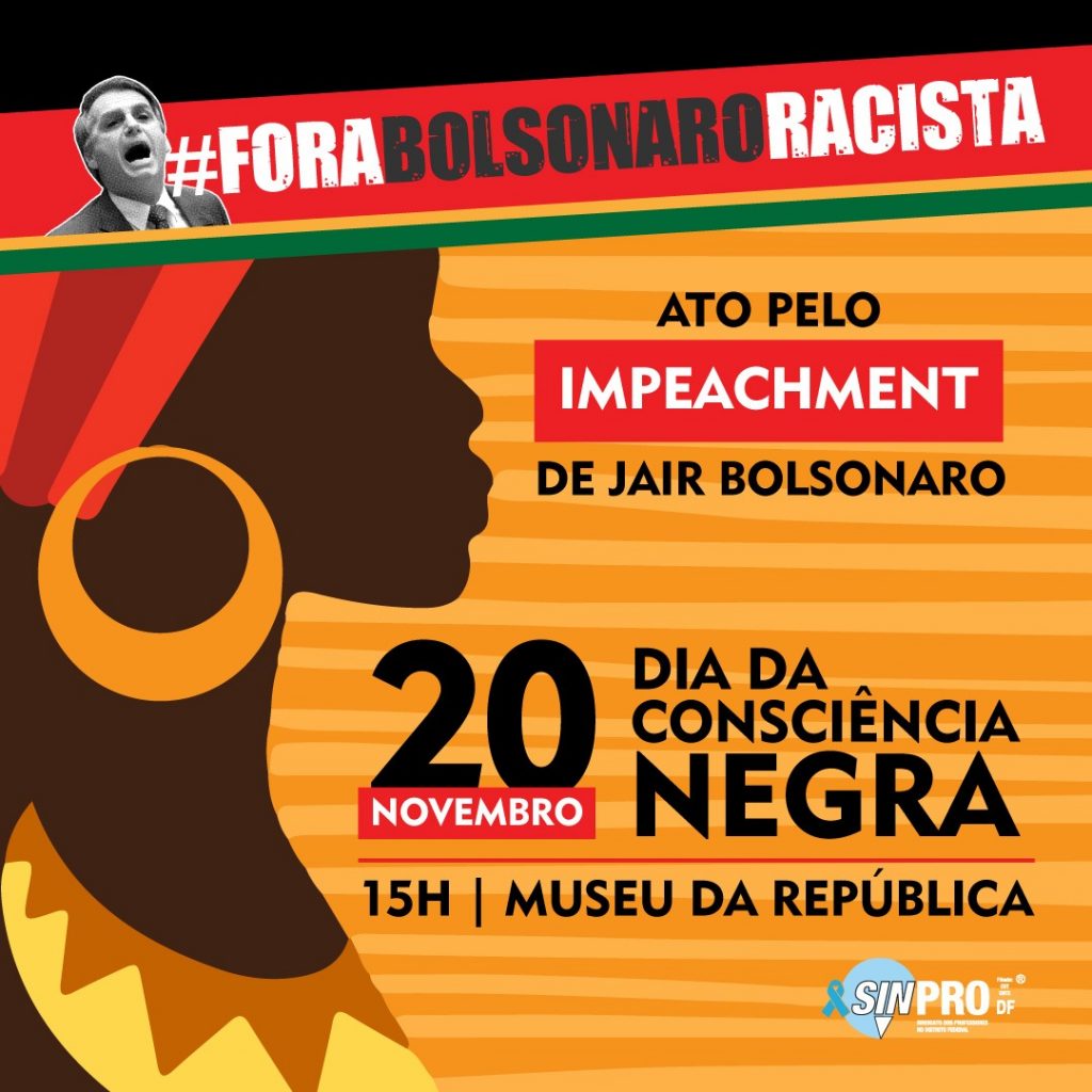 No próximo dia 20 de novembro, o povo voltará às ruas de todo o Brasil para mais um ato pelo impeachment do presidente Jair Bolsonaro. Realizado no Dia da Consciência Negra, a ação tem como palavra de ordem “Fora Bolsonaro Racista”, e unificará as lutas contra o racismo estrutural no Brasil e as pautas urgentes da classe trabalhadora, como o fim da miséria e da fome, por geração de emprego e renda e contra a política econômica do ex-capitão do Exército. No DF, a concentração do ato está agendada para as 15h, no Museu da República.
