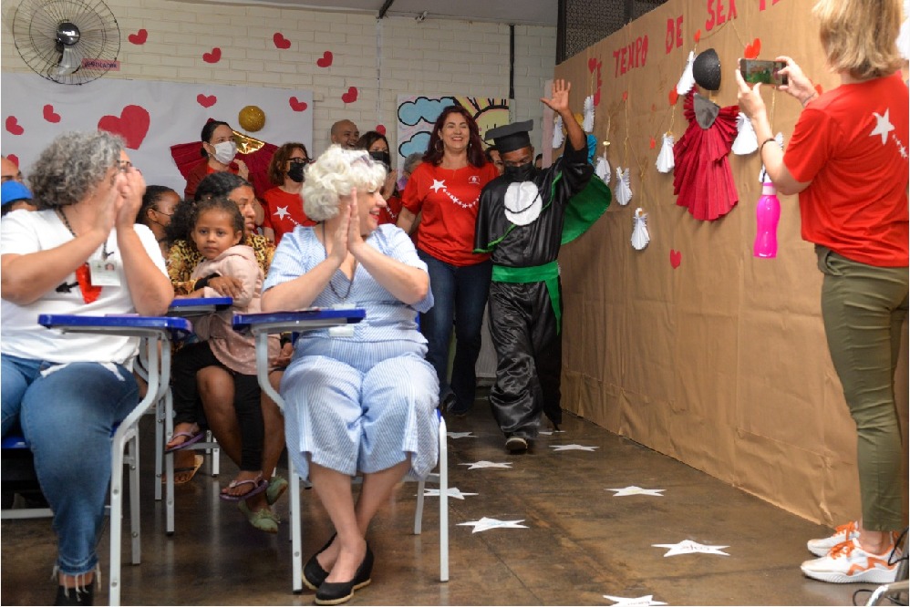O dia 15 de dezembro, última quinta-feira, foi muito especial para a Escola Meninos e Meninas do Parque (EMMP): a formatura de seus estudantes. Foram treze formandos na Educação de Jovens e Adultos (EJA) e duas formandas na turma de anos iniciais.