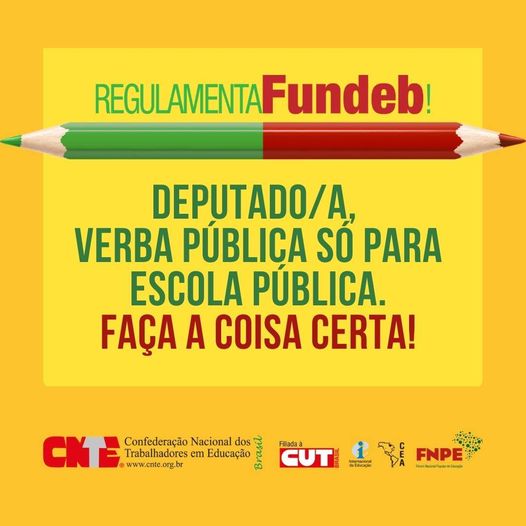 Uma série de ações no Congresso Nacional e nas redes sociais estão sendo desenvolvidas pela Confederação Nacional dos Trabalhadores em Educação (CNTE) e sindicatos filiados, como o Sinpro-DF, para garantir que a Câmara dos Deputados siga a decisão do Senado Federal sobre o texto de regulamentação do novo Fundeb. A cobrança feita pelos servidores da Educação, estudantes e pela sociedade em geral sobre deputados e deputadas vem sendo feita principalmente pelo site Na Pressão, e a orientação é de que a participação popular se intensifique nos próximos dias.