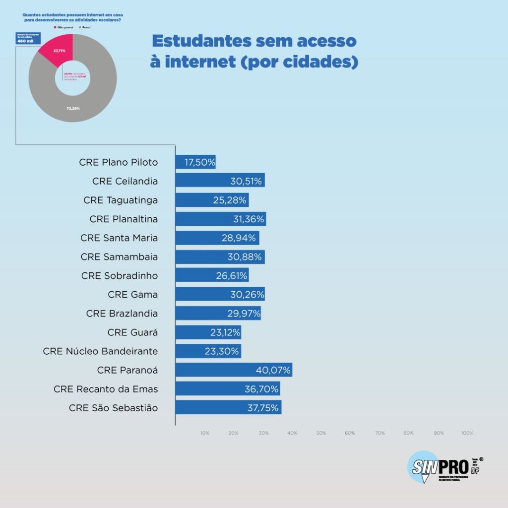 A análise das pesquisas mostra que se o governador continuar com esse projeto, haverá uma exclusão educacional sem precedentes na história da educação do DF e que irá se aprofundar, sobretudo, em cidades-satélites, como Sobradinho, Planaltina, Gama, Recanto das Emas Ceilândia, São Sebastião, onde mais de 30% dos estudantes não têm Internet.