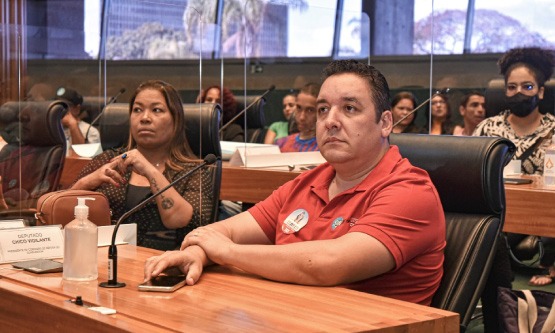 Assim como Carlos Maciel, participaram do evento os diretores do Sinpro Regina Célia e Samuel Fernandes. Foto: Joelma Bonfim/Arquivo Sinpro