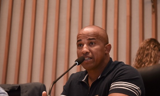Professor e diretor do Sinpro, Carlos Maciel, durante a comissão geral que discutiu o desmonte da EJA. Foto: Joelma Bonfim/Arquivo Sinpro