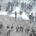 “A região da Rodoviária parecia um cenário de guerra. Eu e um amigo fugimos na direção da Asa Norte. Mas, na SQN 103, uma viatura da polícia nos abordou. Desceram vários policiais que mandaram a gente se deitar no chão com as mãos na cabeça. Embora estivéssemos imobilizados e no chão, bateram na gente com cassetete e jogaram gás de pimenta. Introduziram cassetete no nosso ânus e nos puseram dentro do camburão. Mesmo com a gente passando mal, rodaram conosco pela cidade durante horas e somente depois disso nos largaram na DPE, por volta das 20h. Saímos de lá às 2h da madrugada desta quarta-feira”, relata o Jorge, professor da rede pública de ensino do DF.