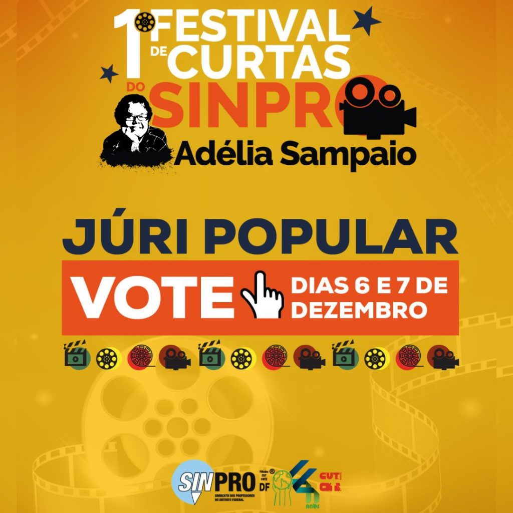 A votação por Júri Popular dos curtas-metragens selecionados para o I Festival de Curtas do Sinpro-DF – Adélia Sampaio começa nesta quarta-feira (6/12) e vai até quinta-feira (7/12). Qualquer pessoa pode participar. Basta clicar no link https://sinpro25.sinprodf.org.br/votacao-i-festival-de-curtas-do-sinpro-df/
