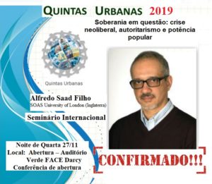 Nesta edição, o Quintas Urbanas trará várias inovações. Uma delas é a expansão da atividade local para internacional. Assim, a XVII Quintas Urbanas será um seminário internacional com a presença de nomes, como do economista Alfredo Saad Filho, autor das obras “Value and Crisis: Essays on Labour, Money and Contemporary Capitalism” e “Brasil. Neoliberalismo Versus Democracia”.