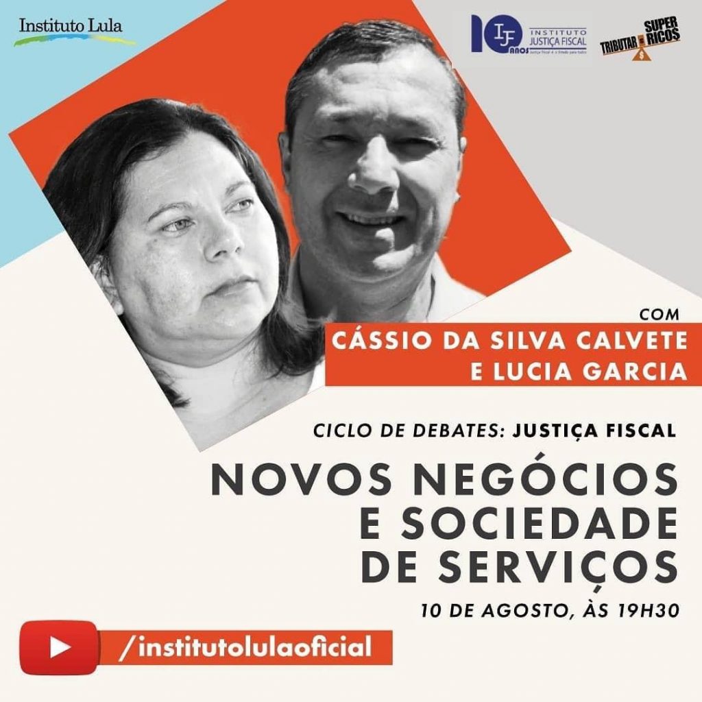 Para o encontro “Novos negócios e sociedade de serviços”, os debatedores serão Cássio da Silva Calvete e Lucia Garcia. A transmissão ao vivo será pelo YouTube ou pelo Facebook do Instituto Lula, do Instituto Justiça Fiscal e da Campanha Tributar os Super-Ricos.
