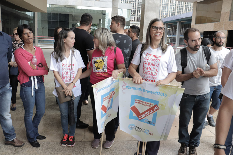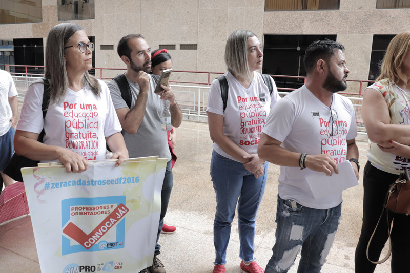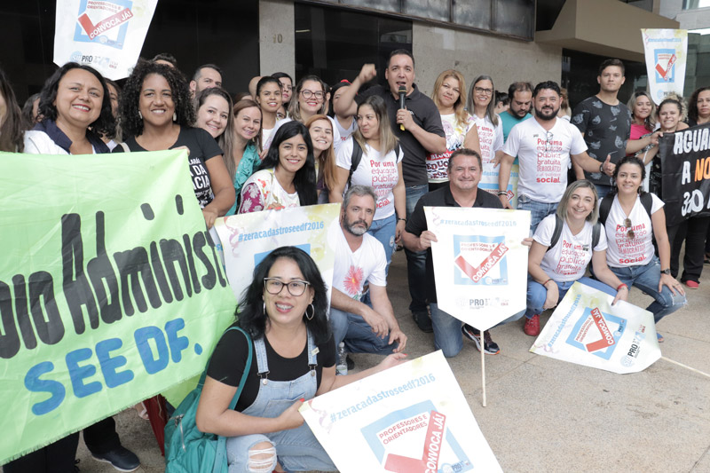 O Sinpro, juntamente com professores(as) aprovados(as) no último concurso da Secretaria de Educação do Distrito Federal (SEE), realizaram um grande ato na tarde desta segunda-feira (02), em frente ao Edifício Phenícia, sede da SEE. Após o início da manifestação a Comissão de Negociação do sindicato e o deputado distrital Reginaldo Veras se reuniram com o secretário de Educação João Pedro Ferraz e com a subsecretária da SUGEP, Kelly Cristina.