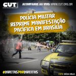Primeiramente, fechou o acesso dos caminhões de som das centrais sindicais participantes e impediu o povo de marchar na Esplanada dos Ministérios. Há pouco, ainda durante a marcha e mais de três horas antes do ato público previsto para ocorrer às 17h, a PM atacou o povo com gás de pimenta e outras substâncias de efeito moral, como bombas de gás lacrimogêneo.