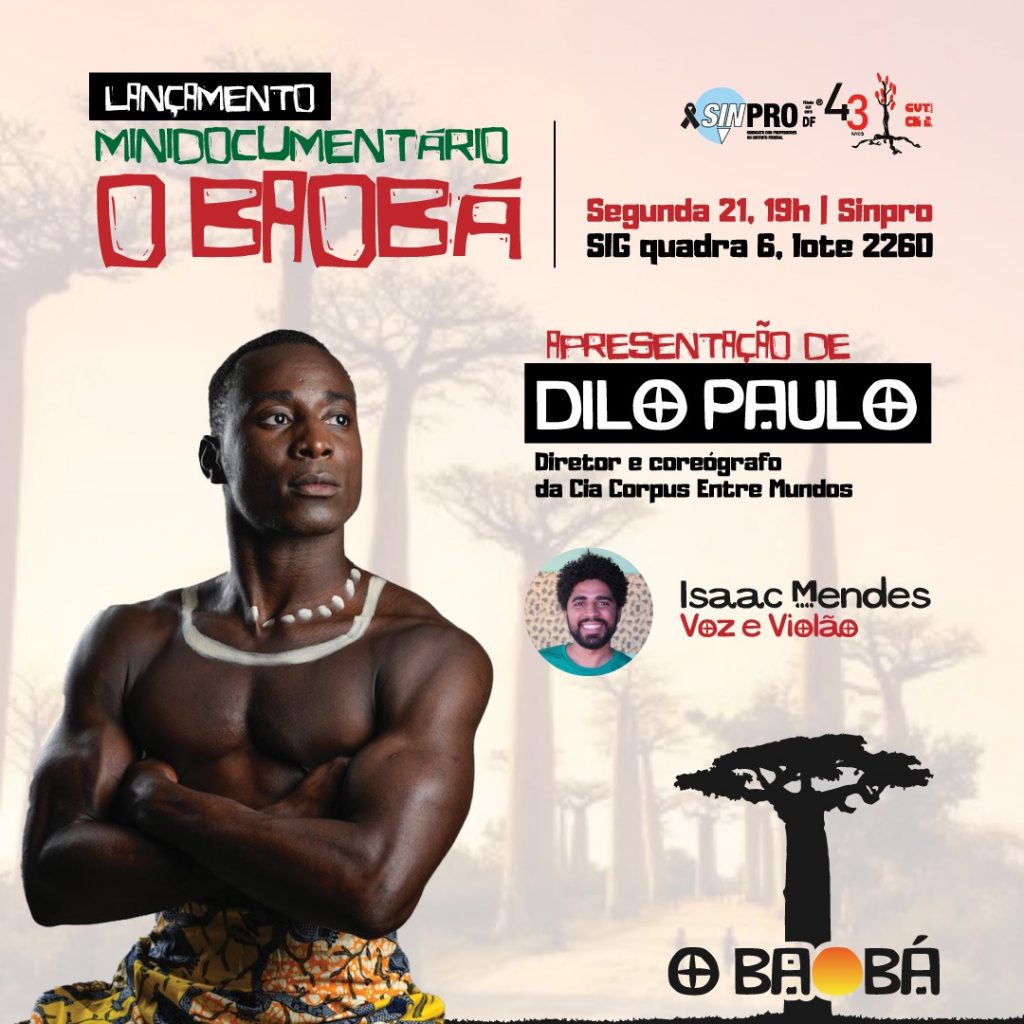 A exibição do minidoc “O Baobá” será celebrada com um coquetel de lançamento, no auditório Paulo Freire do Sinpro-DF. O evento contará com as apresentações do bailarino Dilo Paulo e do músico Isaac Mendes.